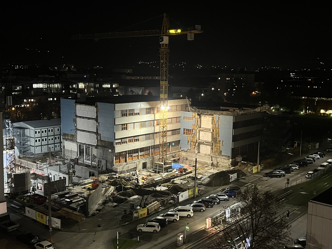 Jetzt ist die Aula auch weg und im Nebentrakt wird eine Fluchtstiege gebaut