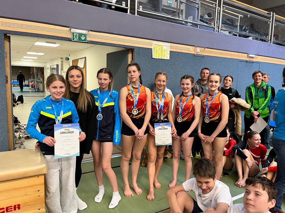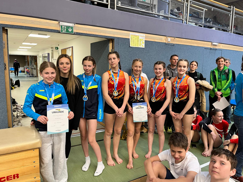 Ein wahrer Medaillenregen übergoss sich wieder einmal über unsere Turner/innen bei den diesjährigen Landesmeisterschaften im Gerätturnen. Keine und keiner musste ohne der bewährten Trophäe heimfahren.