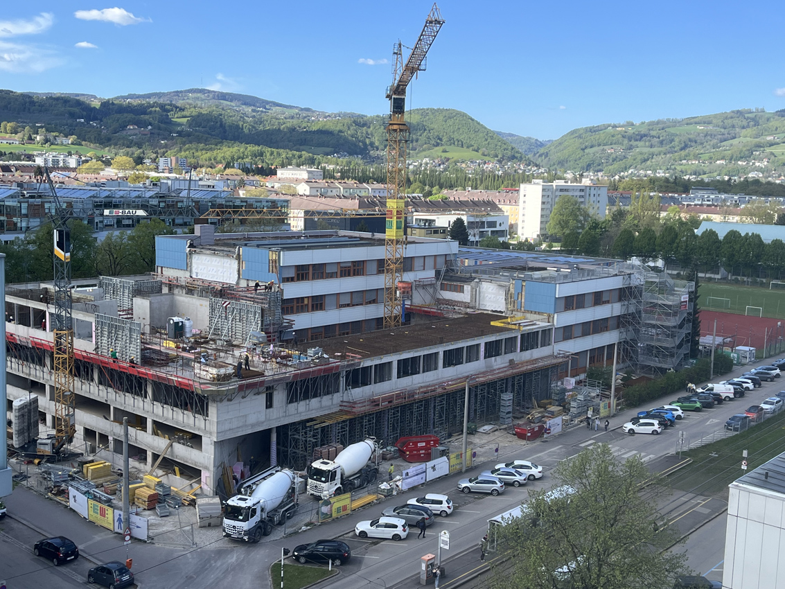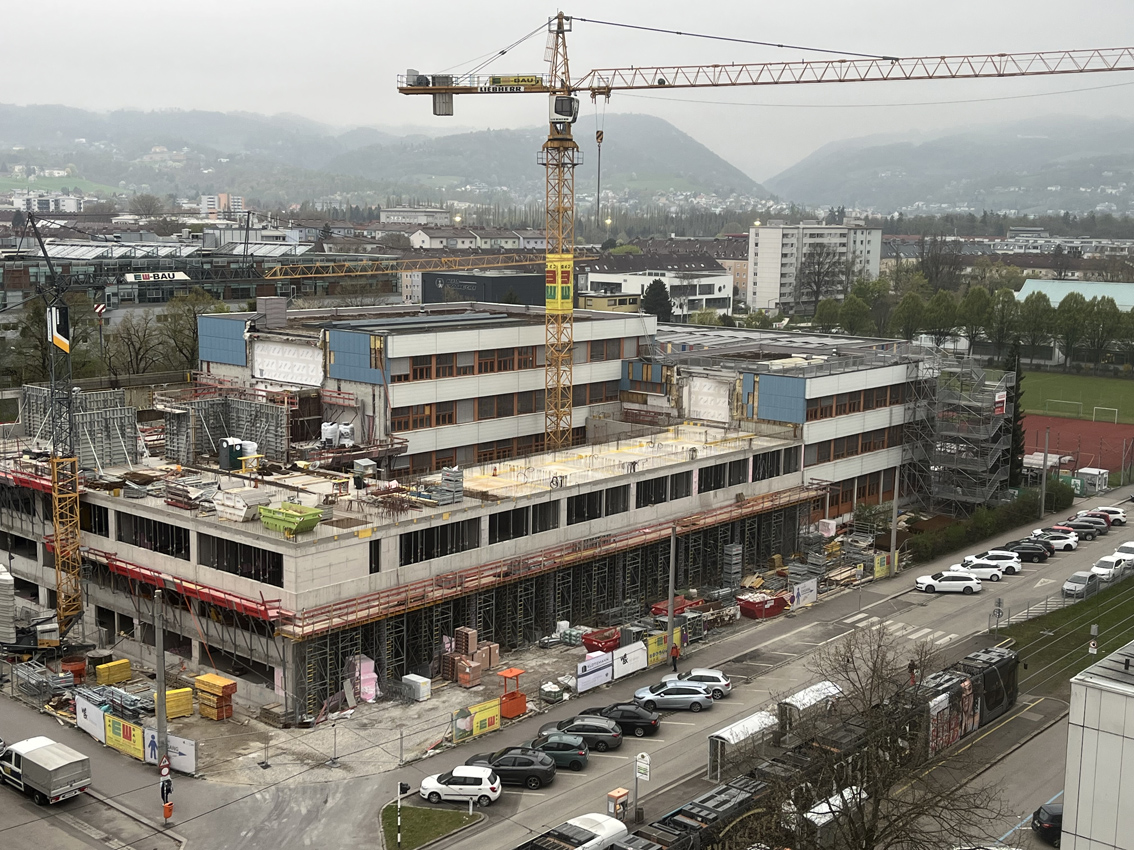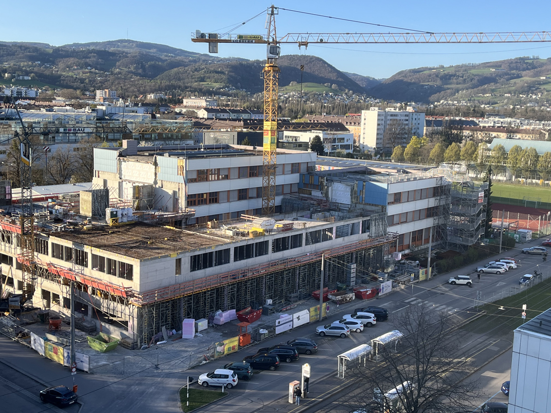 Jetzt ist die Aula auch weg und im Nebentrakt wird eine Fluchtstiege gebaut