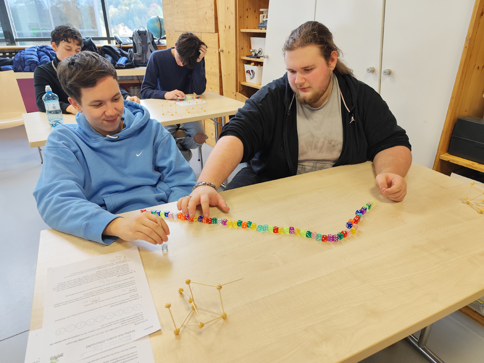 Aber überzeugt euch selbst von den Bildern, die uns am Arbeiten mit dem Spiel „20 gewinnt“, dem Experimentieren an der Eulerschen Polyederformel mit Kichererbsen oder der statistischen Herangehensweise bei Würfelschlangen zeigen.