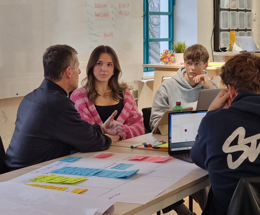 Während des Workshops lernten wir auch mehrere zentrale Inhalte kennen, die für die Entrepreneurschiene typisch sind: Problemfindung, Idee entwickeln, die Relevanz von Teamarbeit, das strukturierte Planen sowie das Präsentieren des vollständigen Projektes. Besonders interessant war zu erleben, wie aus einer anfänglichen Problemidee Schritt für Schritt ein durchdachtes Konzept entstand.