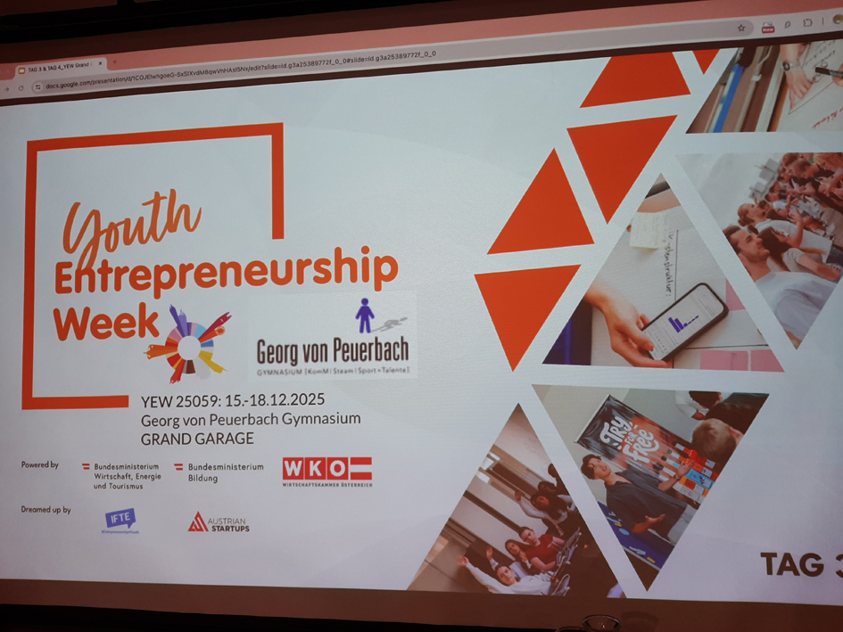 In der letzten Woche vor Weihnachten erhielt die 7AT die exzellente Möglichkeit, kostenlos im Rahmen eines Projekts der IFTE (Initiative for Teaching Entrepreneurship) an einer „Youth Entrepreneurship Week“ in der Grand Garage Linz teilzunehmen.