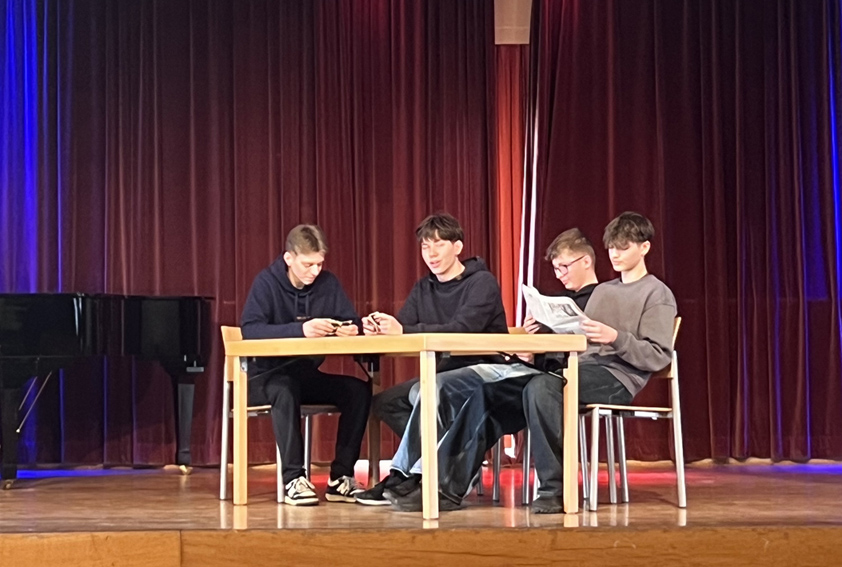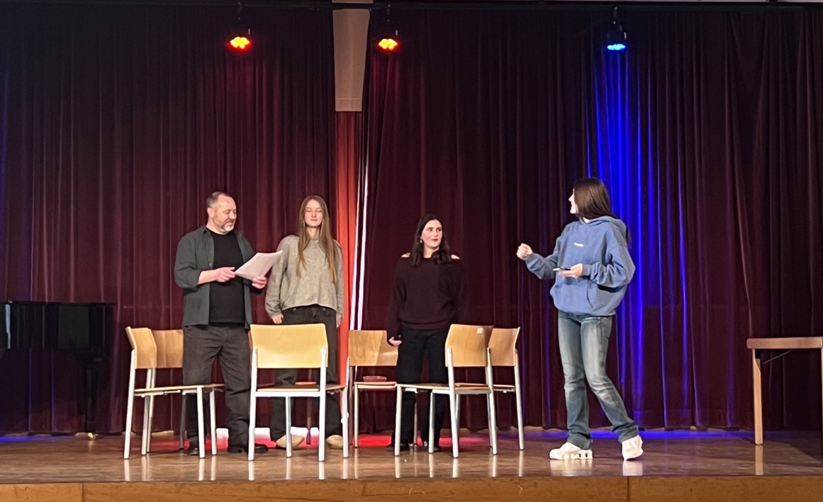Der große Höhepunkt war dann die Vorführung der selbst verfassten Performances und Präsentationen am Freitag im Volkshaus Dornach, wo auch einige Eltern und Lehrkräfte im Publikum waren.