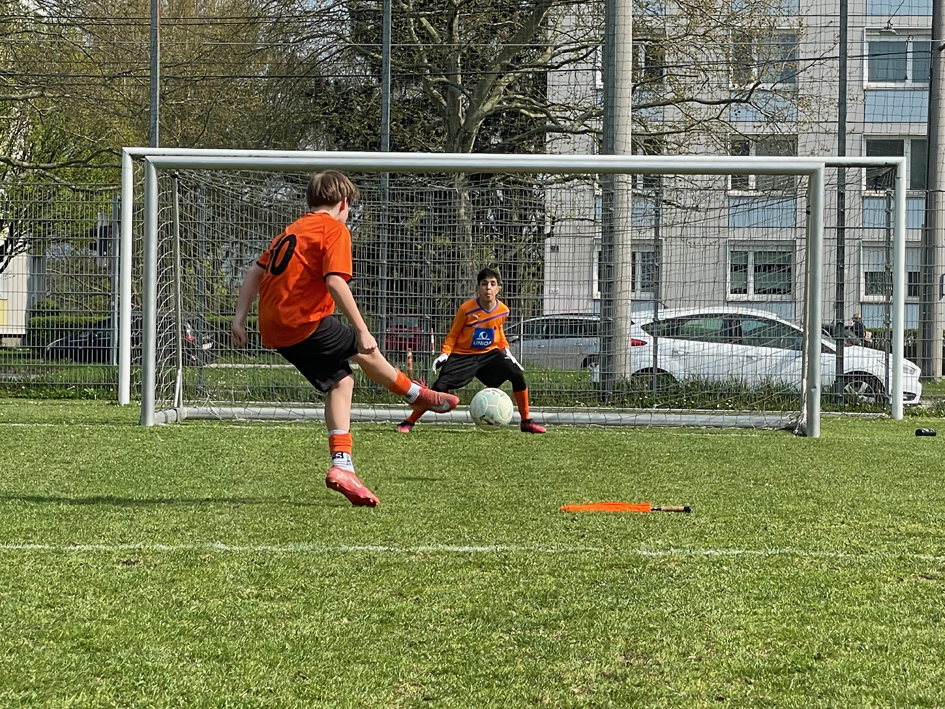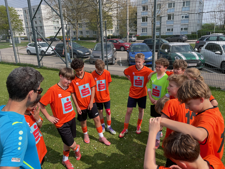 Im Finale zeigte unser Team gleich, in welche Richtung dieses Spiel gehen sollte – klar mehr Ballbesitz, gute Ballstafetten und schließlich ein wunderschönes 1:0: Nach einem Eckball traf Tugra S. mit einem tollen Kopfball aus kurzer Distanz. Leider konnte unser Team dann aber nicht entscheidend nachsetzen, unsere Spieler mussten den Strapazen der letzten Tage – einige hatten sogar am Vorabend eine sehr anstrengende Partie gehabt – Tribut zollen; wir konnten keinen weiteren Treffer erzielen und, wie so oft im Fußball, schaffte das Ramsauer Gymnasium den Ausgleich! Nach einem Pass in die Tiefe ging der Stürmer dem Ball sehr vehement nach und konnte zum 1:1 einspitzeln.