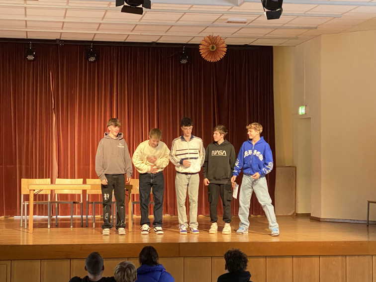 Hier stellten die Gruppen vor, woran sie sie letzten Tage selbstständig gearbeitet haben. Einige spielten kurze Sketsches vor, andere präsentierten eine neue Interpretation des Klassikers “die Physiker”, und manche stellten ihre Hobbys oder interessante Themen in Form von Präsentationen vor.