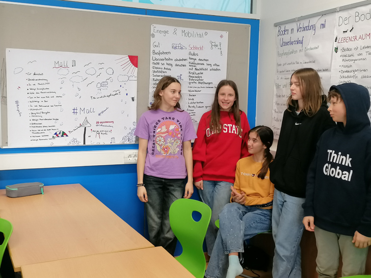 Unsere Greenpeers präsentierten auch in diesem Jahr die Ursachen und die Folgen des Klimawandels in den dritten Klassen und erarbeiteten mit den Lernenden gemeinsam Möglichkeiten, sich in der Schule, privat oder in der Familie für den Klimaschutz einzusetzen. Dabei erstellten die Schüler/innen in den Klassen gemeinsame Plakate, zu Themenbereichen des Konsums, der Energie, der Mobilität oder auch der Müllentsorgung. So sollen diese Informationen auch noch länger in den Klassen präsent bleiben.