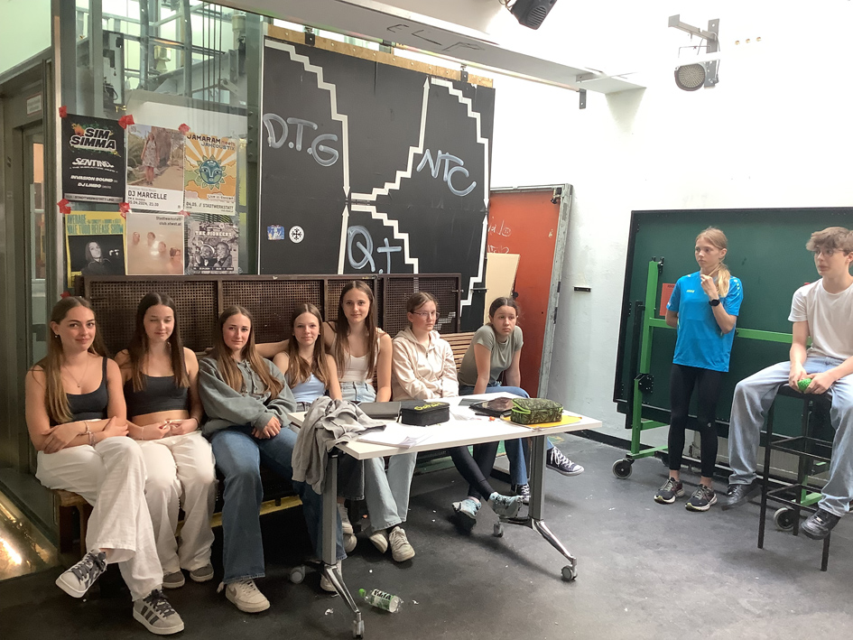 Diese und andere Themen wurden in dem zweitätigen Workshop mit Roswitha Kröll besprochen. Vorher hatte die Klasse sich mit dem Thema Kernspaltung, Radioaktivität und Atomkraft beschäftigt, der Anknüpfungspunkt in Deutsch war die Textsorte Erörterung. Mit diesem Hintergrundwissen gestalteten die SchülerInnen dann eine sehr hörenswerte Radiosendung. Das Einsprechen der Texte im Studio war dabei etwas Besonderes. Das Ergebnis kann über folgenden Link abgerufen werden: https://cba.media/658951