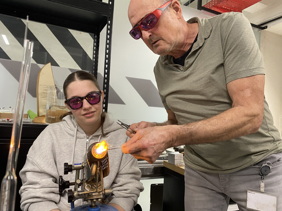 Im Frühjahr der 3. Klasse und im Herbst der 4. Klasse durften wir – die 4C – im Rahmen der STEAM-Projekte die Grand Garage besuchen. Beim ersten Mal haben wir mit einem professionellen Glasbläser Glas geschmolzen bzw. geblasen. Auch haben wir ein Gurkenglas mit der Kraft der Sonne zum Leuchten gebracht. Dabei bekamen wir Einblicke in die Welt der Elektronik und des Lötens. Außerdem waren wir in der „Plastic Garage“, wo wir flüssiges Plastik in Formen gossen und dann Gegenstände wie Kreisel, Kämme und Karabiner herstellen konnten. Zu Mittag genossen wir ein Büfett beim Mongolen.