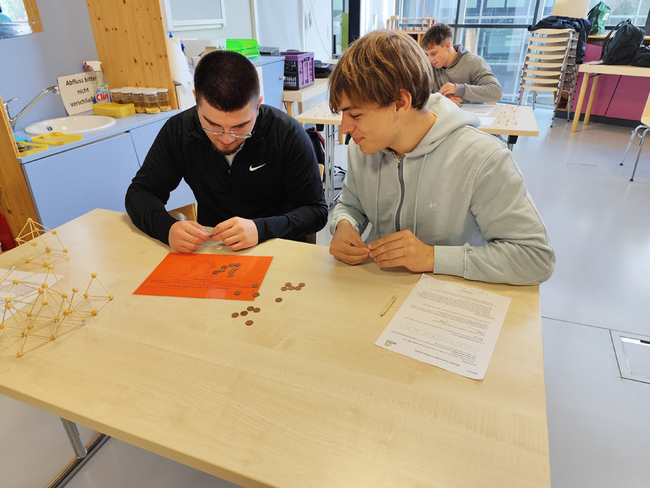 Aber überzeugt euch selbst von den Bildern, die uns am Arbeiten mit dem Spiel „20 gewinnt“, dem Experimentieren an der Eulerschen Polyederformel mit Kichererbsen oder der statistischen Herangehensweise bei Würfelschlangen zeigen.