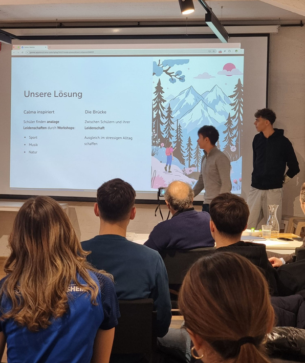 Der Höhepunkt der Woche war der sogenannte Pitch, bei dem wir unsere Projekte vor einer Jury präsentierten, die aus echten Entrepreneuren aus der Praxis bestand. Dadurch enstand eine sehr realitätsnahe und professionelle Atmosphäre, die sich deutlich von gewöhnlichen Schulvorträgen unterschied. Das Feedback der Jury war konstruktiv und hilfreich und vermittelte uns einen Eindruck davon, wie Ideen in der unternehmerischen Welt bewertet werden.