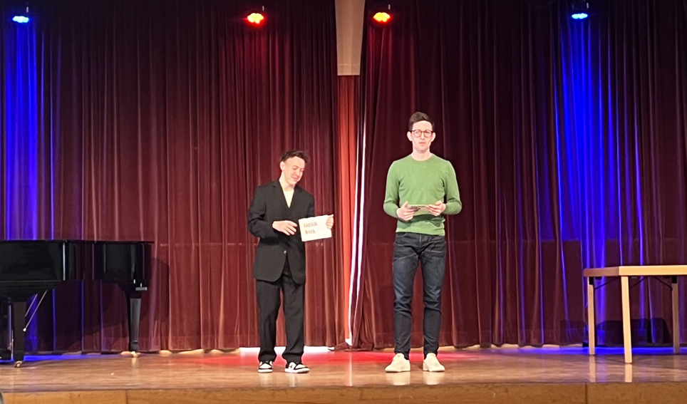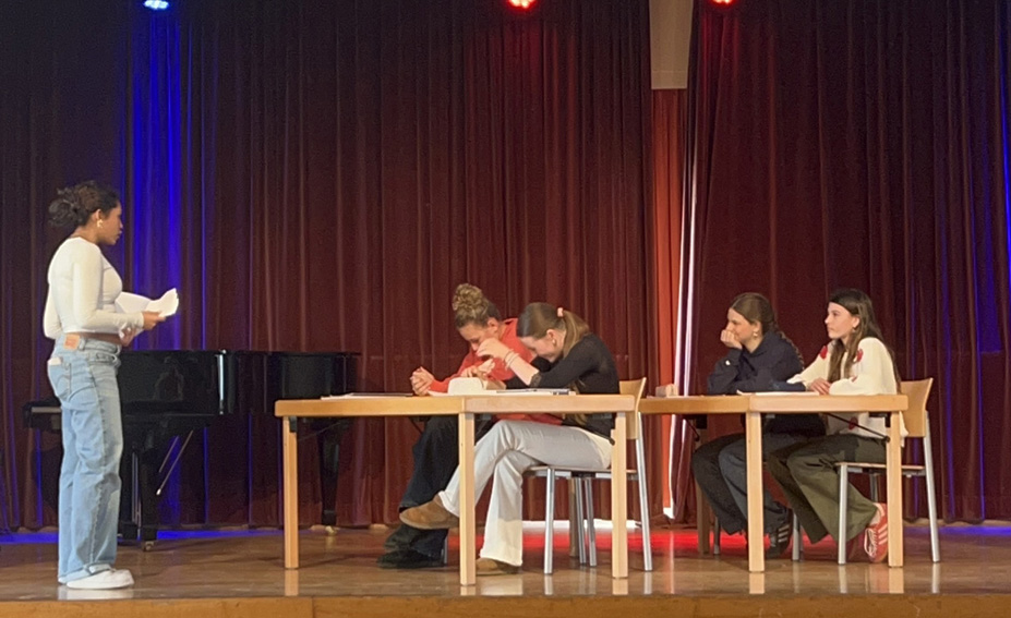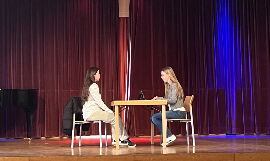 Der große Höhepunkt war dann die Vorführung der selbst verfassten Performances und Präsentationen am Freitag im Volkshaus Dornach, wo auch einige Eltern und Lehrkräfte im Publikum waren.