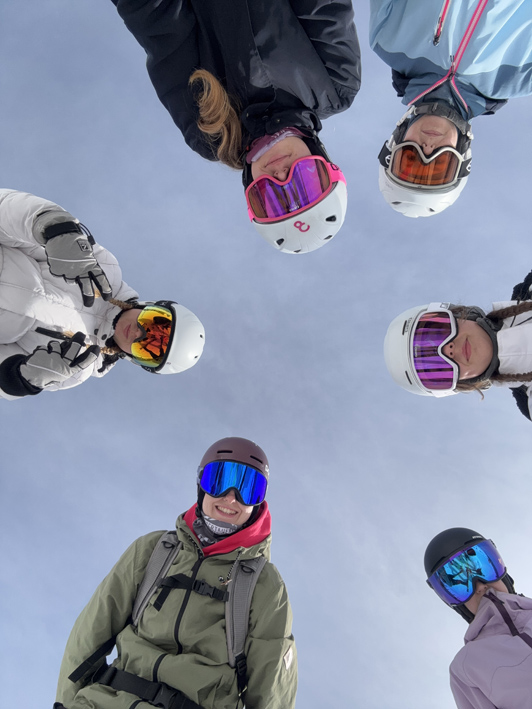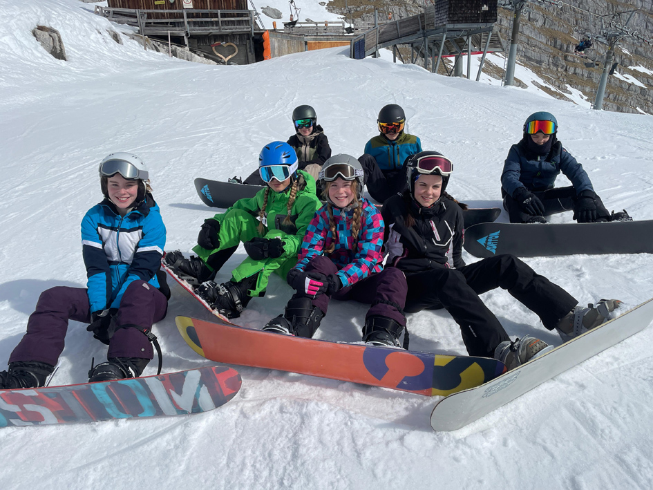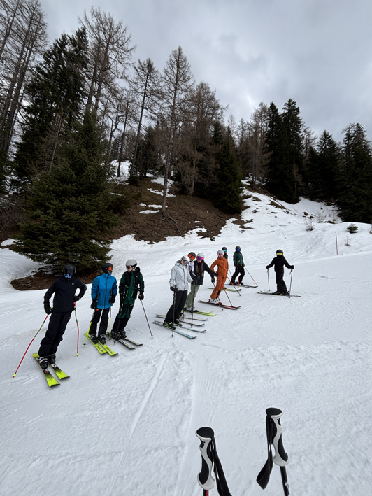 Nach der Ankunft trugen wir unser Gepäck zur Standseilbahn, die kurz darauf abfuhr. Oben angekommen verstauten wir unsere Koffer und Taschen in einem Skidoo, der sie zu unserer Unterkunft brachte. Danach bezogen wir unsere Zimmer und gingen in den Speisesaal. Dort wurde der Tagesablauf besprochen. Nach dem Essen machten wir uns auf den Weg zur Piste. Die Ski- und Snowboardgruppen wurden eingeteilt und alle hatten einen lustigen ersten Nachmittag im Schnee.