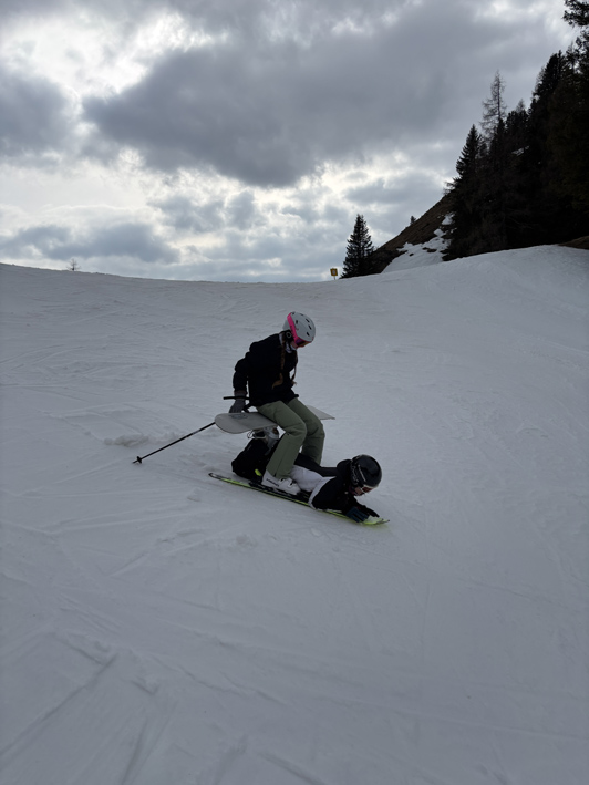Am nächsten Tag wurden wir um 7:30 Uhr geweckt, das Frühstück begann um 8:00 Uhr. Danach ging es wieder auf die Piste. Der Tag war spannend, da viele Kinder und Jugendliche noch nie auf einem Snowboard gestanden waren, aber es funktionierte überraschend gut. Um 12:00 Uhr gab es Mittagessen, danach eine kurze Pause, bevor es weiterging. Um 16:00 Uhr trafen wir uns wieder bei der Unterkunft. Bis 17:30 Uhr hatten wir Zeit zum Duschen und Ausruhen, dann gab es Abendessen.