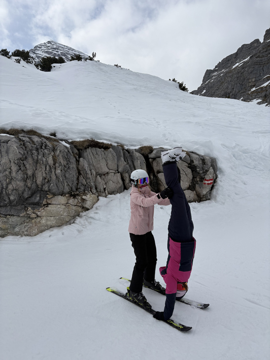 Zurück in der Unterkunft hatten wir etwas Freizeit. Manche trafen sich auf den Zimmern, andere gingen in den Turnsaal. Nach jedem Abendessen gab es ein Abendprogramm: Am ersten Tag lernten wir die Pistenregeln und Erste Hilfe auf der Piste. Um 21:15 Uhr mussten sich alle in ihren Zimmern aufhalten, da die Sauberkeit kontrolliert wurde. Dafür gab es eine Punkteliste, bei der man täglich bis zu fünf Punkte erreichen konnte. Zusätzlich gab es jeden Tag eine Challenge, bei der man einen extra Punkt gewinnen konnte. An diesem Abend sollte man singen und am besten auch tanzen – nur wenige erreichten alle Punkte. Um 22:00 Uhr war Bettruhe.