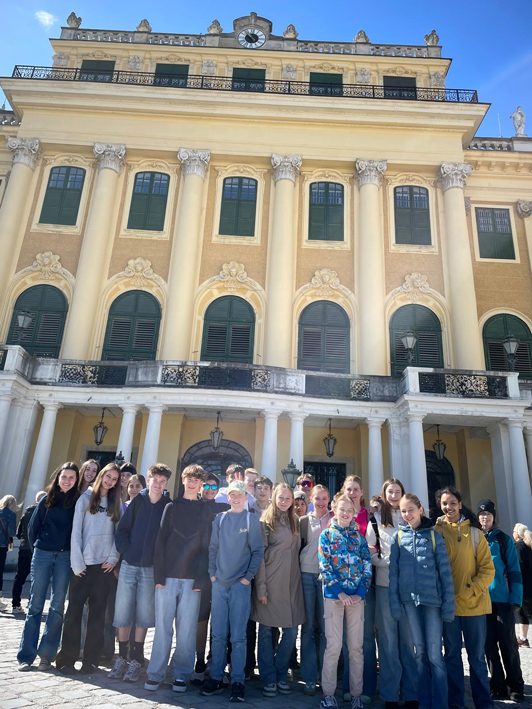 Am 8. April unternahmen die 3S, 3T und 3B gemeinsam eine Exkursion nach Wien. Unser erstes Ziel war das prachtvolle Schloss Schönbrunn, wo wir die historischen Räumlichkeiten besichtigten.