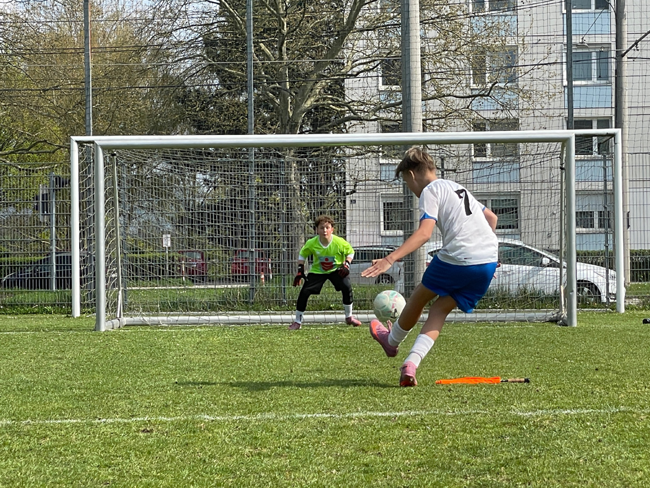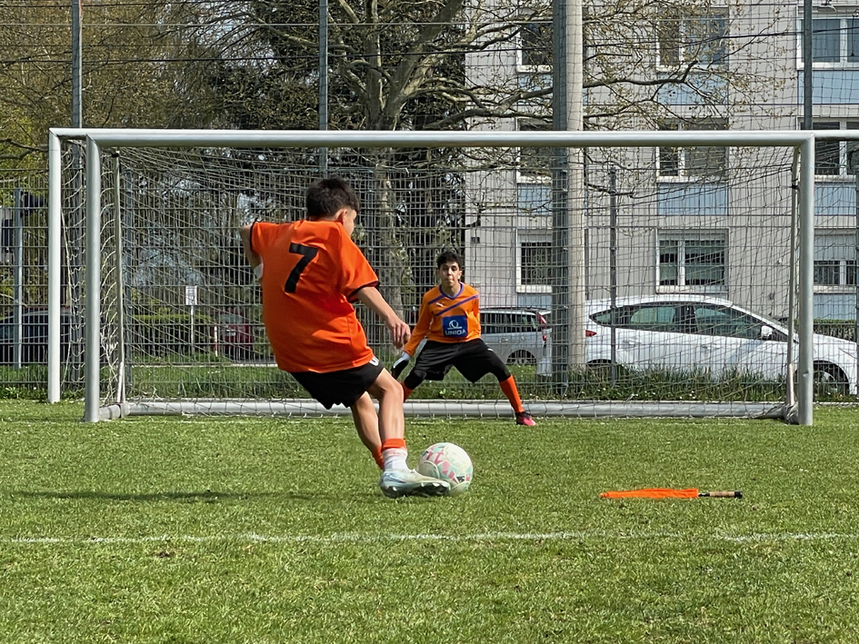 Im Finale zeigte unser Team gleich, in welche Richtung dieses Spiel gehen sollte – klar mehr Ballbesitz, gute Ballstafetten und schließlich ein wunderschönes 1:0: Nach einem Eckball traf Tugra S. mit einem tollen Kopfball aus kurzer Distanz. Leider konnte unser Team dann aber nicht entscheidend nachsetzen, unsere Spieler mussten den Strapazen der letzten Tage – einige hatten sogar am Vorabend eine sehr anstrengende Partie gehabt – Tribut zollen; wir konnten keinen weiteren Treffer erzielen und, wie so oft im Fußball, schaffte das Ramsauer Gymnasium den Ausgleich! Nach einem Pass in die Tiefe ging der Stürmer dem Ball sehr vehement nach und konnte zum 1:1 einspitzeln.