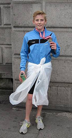 2.) Eine wahrliche Sensationszeit lieferte Laurenz Schaurhofer aus der 3T Klasse. Er lief den Viertelmarathon in 42:32 Minuten. Das sind fast 15 km/h Schnitt auf 10,5 Kilometern. Leider gibt es wegen dem Juniormarathon keine Altersklassen, diese hätte er überlegen gewonnen! Es gibt im weiten Umfeld keinen Läufer in seinem Alter. Mit dieser Spitzenleistung hat er sich auch eine Pizza verdient und wird uns begleiten.