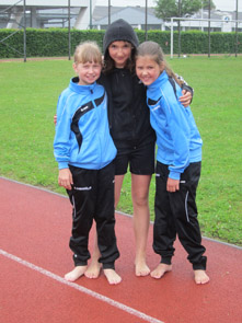 Team 1 - Anna B., Caroline J., Lara U. gemeinsam mit Team 2 -